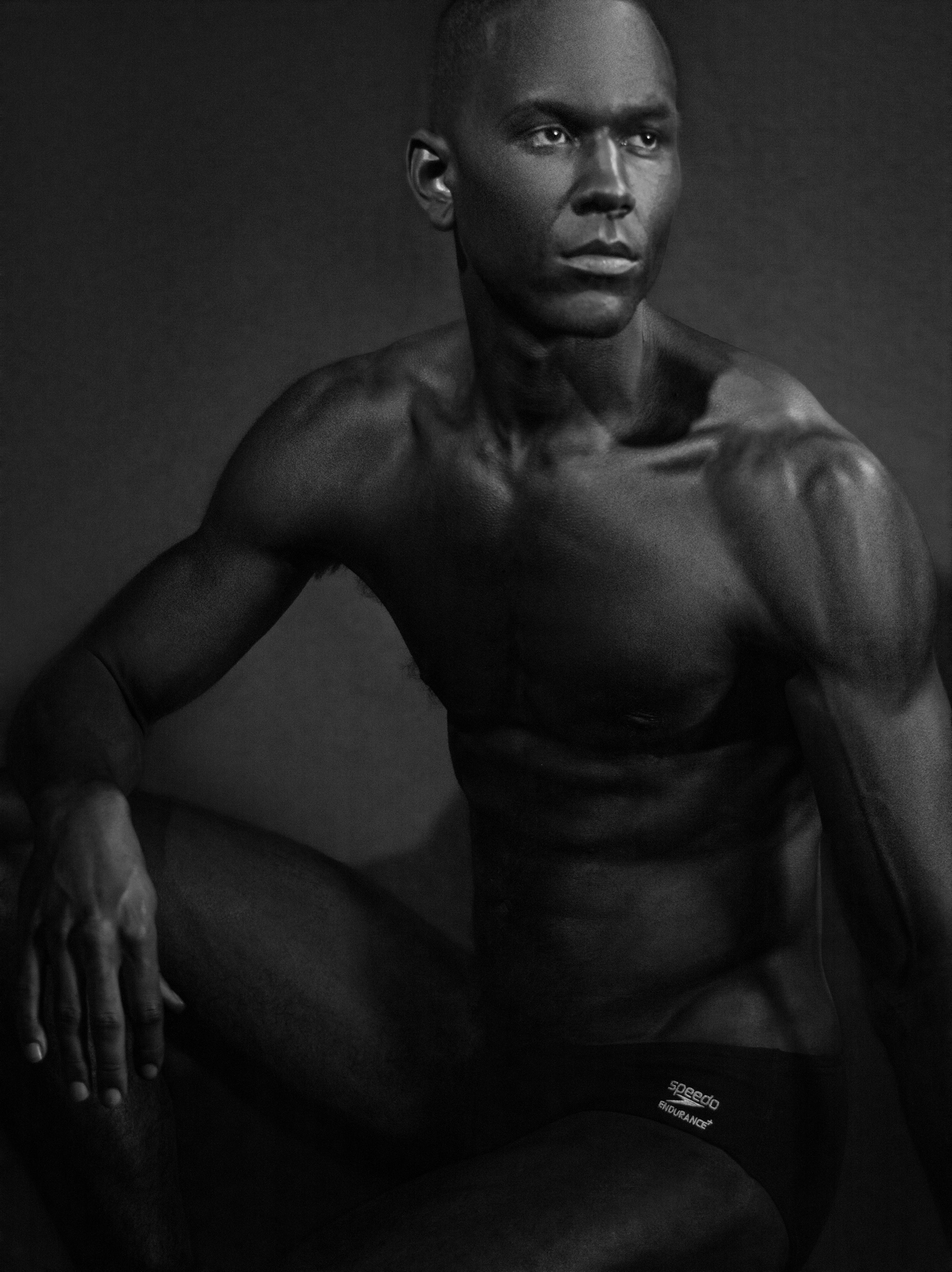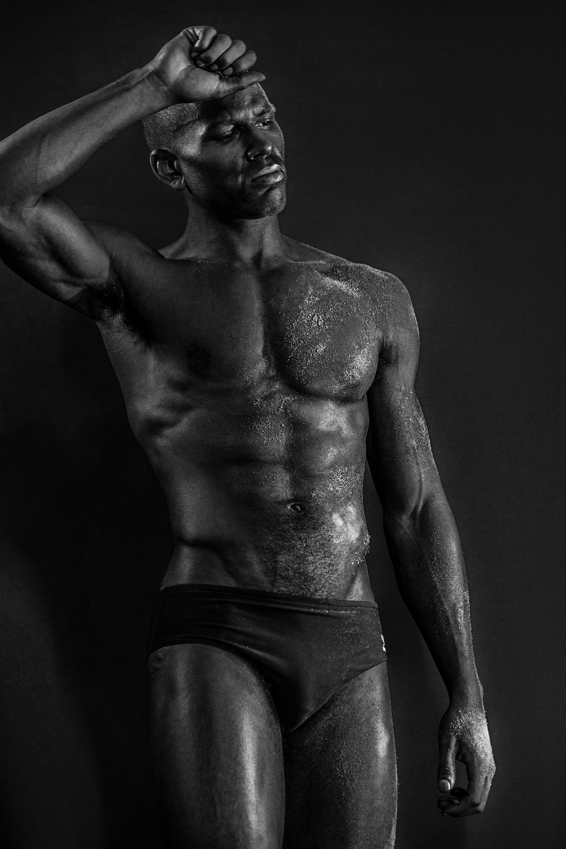 Shadows and Sand is an editorial portrait study exploring the interaction of light, texture, and the human form. Created in collaboration with Garrett from the men’s division at Major Models NYC, the project experiments with materials such as black sand and oil applied to the model’s skin to create dramatic surface textures under studio lighting.